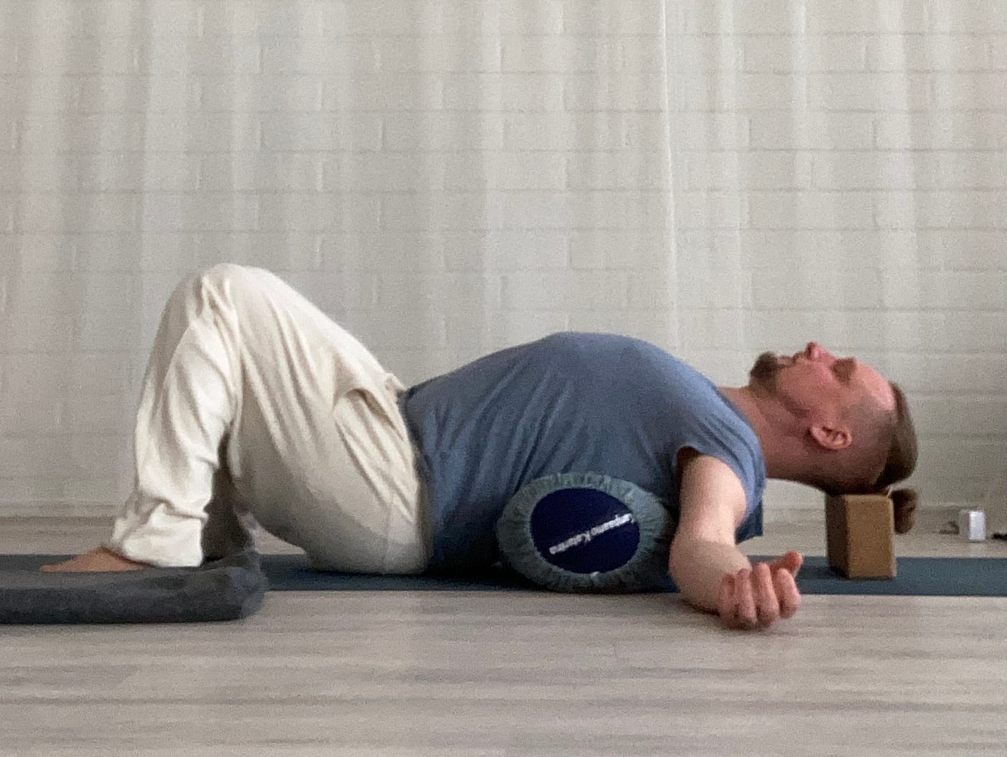 Tarvitset tuntia varten viltin, tiilen, bolsterin ja tai vaihtoehtoisesti bolsterin ja tiilen tilalla voit käyttä vaikka sohvatyynyjä.